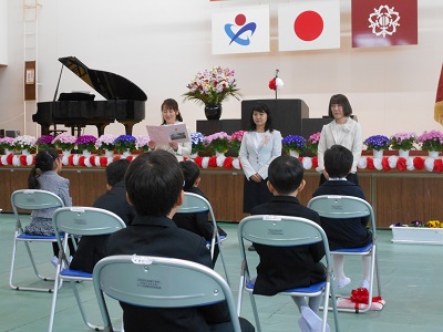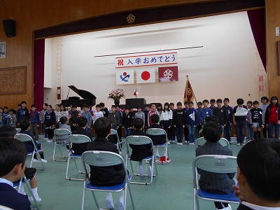 6年生児童が、式の途中、「威風堂々」を演奏しながら
