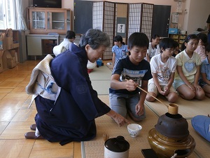 本郷小学校区にお住まいの茶道の髙橋先生をお迎えし、