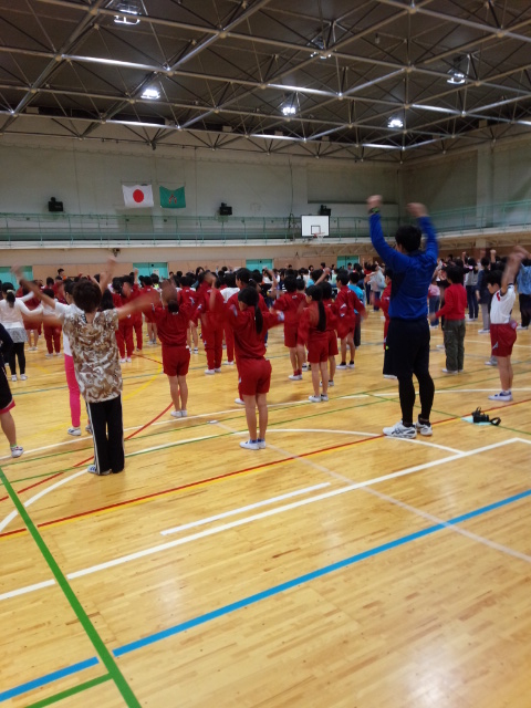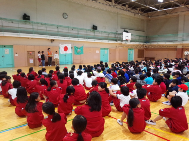赤城は、起床時は曇りでしたが、今は本降りです。朝のつどいは体育館で行いました。