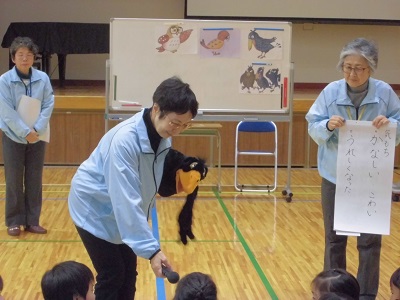 からすの人形を巧みに操り、人権講話をしてくださいました。