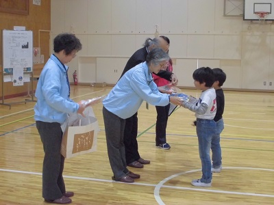 最後に代表児童が人KENまもる君と冊子をいただきました。