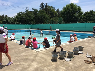 みんなできれいにしました プール清掃