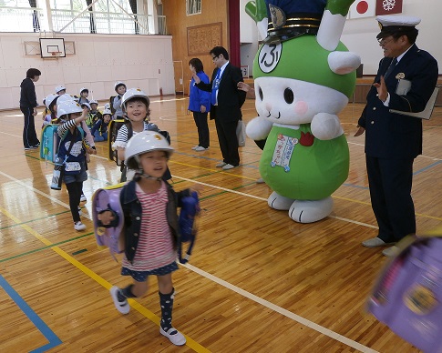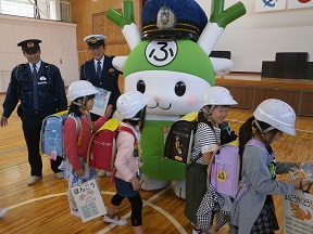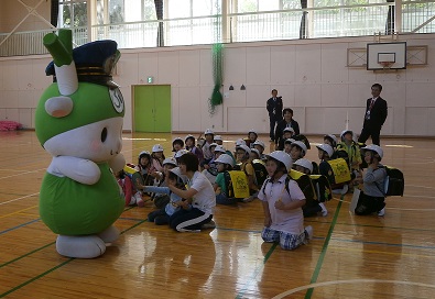 に来校をし、1年生に安全について指導してくれました。