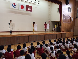 11月17日(火)は、児童会の皆さんを中心とした「いじめ撲滅集会」が行われました。本郷小からいじめや暴力が起こらないよう全員でいじめ撲滅宣言を誓いました。