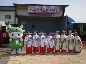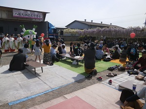 晴天に恵まれ、たくさんの人が集う八幡大神社で行われる恒例の出停懇会。