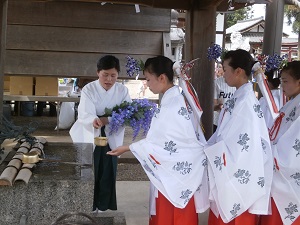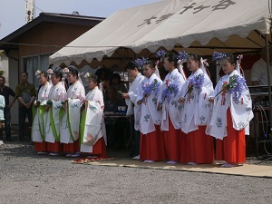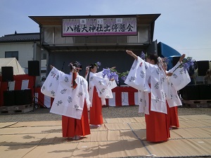 豊栄の舞。藤の花を持ち、優雅に舞います。
