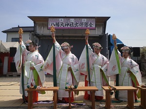 浦安の舞。鈴の音が響き、舞を引き立てます。