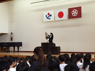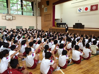 5月12日(火)全校朝会で、校長先生より人権についてのお話がありました。「『あいさつ日本一 笑顔があふれる 本郷小学校』が本校のスローガンです。みんなが笑顔になるためには、一人一人が思いやりの心を持つことが大切です。ちょっとした気遣いが皆さんの明るい笑顔につながります。笑顔があふれる本郷小にしていきましょう。」というお話でした。また、生徒指導担当より、「深谷の子6つの誓い」や「あいさつ・靴そろえ」についてもお話がありました。子ども達は真剣に話を聞き、しっかりと返事をしていました。思いやりのあふれる週間にしたいですね。