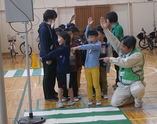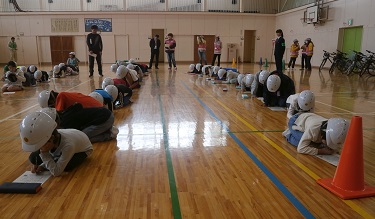 あいにくのお天気になってしまいましたが、体育館で交通安全教室を実施しました。