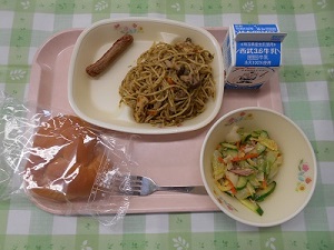本日の給食は、和風スパゲッティと春キャベツのサラダです。