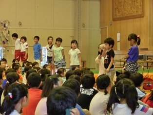 計画委員の児童を中心に、願い事の発表や