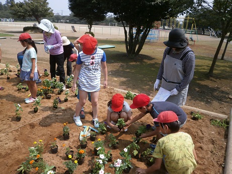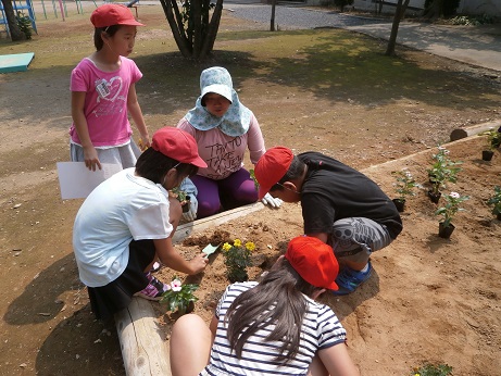 6月25日’木)に4年生の児童がガーデニングに挑戦(深谷花はなプラン)しました。グループでデザインを考え、学校応援団の皆様にご指導をいただきながら、一緒に花植を行いました。百日草やマリーゴールド、ペチュニアなどの花がきれいに咲いていますので、是非ご覧ください。学校応援団の皆様ありがとうございました。