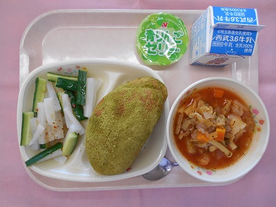 今日は、抹茶入りきなこ揚げパンでした。