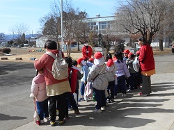 この時期は、湿った雪が降ることが多いですが、まれに見るふわふわサラサラのパウダースノーでした。ゆきだまをつくって当てっこしたり、ゆきだるまを作ったり、普段なかなか出来ない遊びを楽しみました。雪に覆われた校庭で球技をする姿もあり、元気に遊ぶ姿に子どもらしさを感じられる時間でした。
