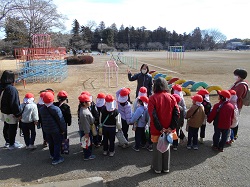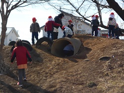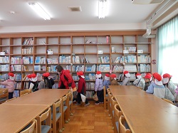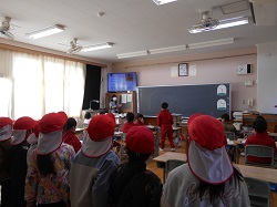 エンゼルこども園のはな組さんが学校見学に来ました。見学に訪れるみなさんには、ドカン山が好評のようです。本郷小学校の外遊びの体験をして、校舎の中に入り休み時間や授業の様子を見学してまわりました。