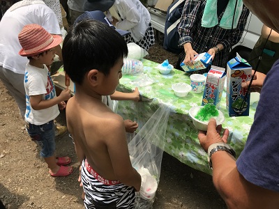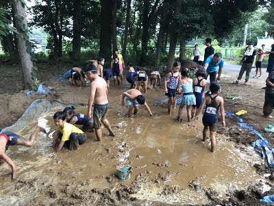 どろんこ体験、金魚すくい、かき氷、焼きそば、フランクフルト等