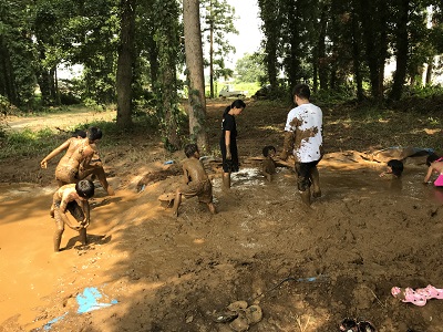 どろんこの中での宝探し。見つけた人には豪華景品が出ました。