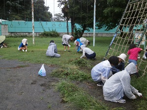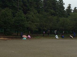 8月20日(土)小雨の中での実施となりましたが、早朝から、たくさんの保護者と児童のみなさんに集まっていただき、奉仕作業が行われました。