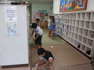 児童は雨のため、校舎内の清掃を行いました。