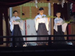 10月14日(火) 八幡大神社において収穫を神様に感謝する秋季例大祭が行われ、本校児童4、5、6年生が豊栄舞、朝日舞、浦安舞の神楽舞の奉納をしました。