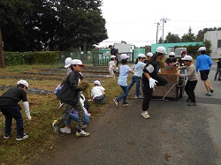 絵文字:星地域草かりボランティアによる校庭の除草作業