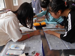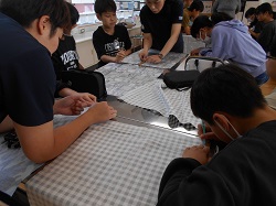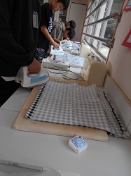 ランチョンマットの製作が始まり、印を付けるのにドキドキ、アイロンかけるのにドキドキと慎重に作業をしていました。
