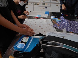 好きな絵柄の布で自分のランチョンマットを製作しています。今日はミシン実習までたどり着きませんでしたが、保護者含めミシンボランティアの方々、ご指導ありがとうございました。