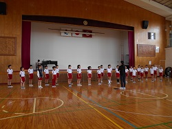 4年生の4時間目は、音楽で体育館で入退場やステージ上での隣の人との間隔を確認しました。立派な姿と素敵なハーモニーを奏でてくださいね。