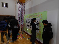 壮行会の後に、お友達が書いてくれたお祝いメッセージを熱心に読んでいる姿がありました。