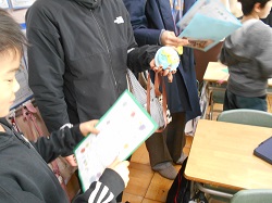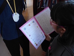 2年生は、自分が成長したところの発表と感謝の気持ちを手作りメダルにして、保護者の方にプレゼントしました。みんなの前で上手に発表ができました。