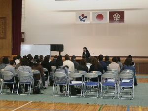 初めての小学校での活動に緊張しながら、