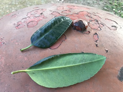 昔は、タラヨウの木の葉の裏側に字を書き手紙(葉書)にしていました。