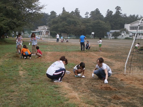 早朝7時30分から、たくさんの保護者と児童、教職員が集まり、