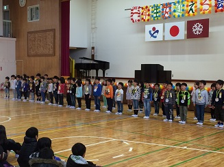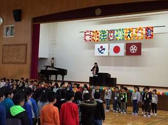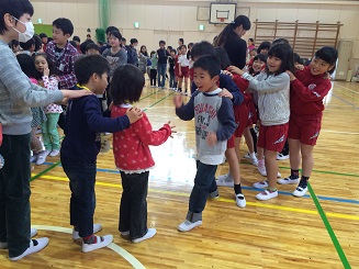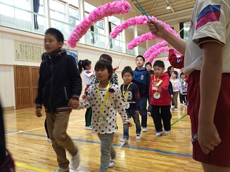 校歌や首飾りのプレゼント。みんなでジャンケン列車。楽しい一時を過ごしました。