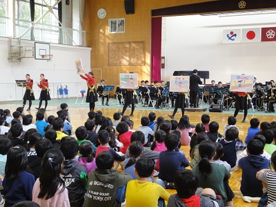 埼玉県警音楽隊・カラーガード隊の皆様が来校し、