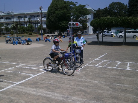 5月26日(火)交通安全教室が開かれました。1年生では、安全な歩き方や正しい横断の仕方を学びました。3年生では、自転車点検の仕方や安全な自転車の乗り方を学習しました。4年生では、安全に関する知識を学び、自転車実技の講習がありました。どの子も真剣な顔つきで自転車に乗っていました。学んだことを日頃の交通安全に生かしてほしいです。道路管理課・深谷警察・交通指導員・交通安全母の会の皆様には大変お世話になりました。