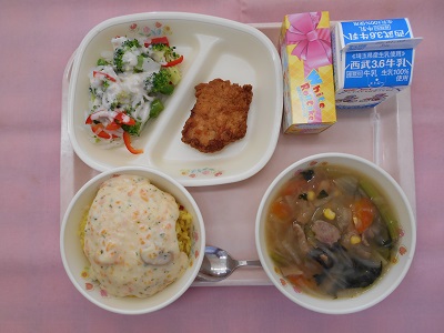 明日が、クリスマスイブということで、少し早めのクリスマス献立でした。