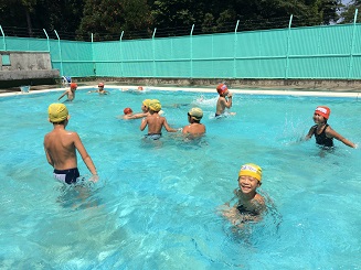夏休みのプール開設では、子ども達の元気な声があふれています。全10回のプール開設が本日終了します。事故無く安全にプール開設ができたことを感謝いたします。