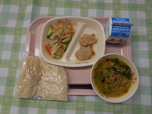 担々麺は、すりごまやねりごまがたっぷり入ったピリ辛麺です。栄養満点のごまは、白やピンクのかわいい花を咲かせ、その後、たくさんの種子が詰まった実がなります。その種を「ごま」として私たちは食べています。給食では、ほぼ毎日といっていいほどごまが使われています。よく観察して食べてみてください!