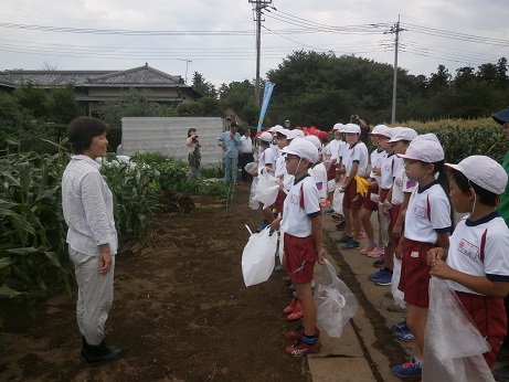 吉川さん宅のとうもろこし畑で収穫体験をさせていただきました。