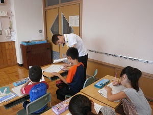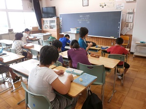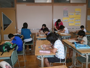 8月1日から3日までの3日間、算数をがんばりたい児童が登校し学習しています。一人一人の疑問に、本校の教職員や埼玉工業大学の大学院生ボランティアが応えられるよう少人数で行っています。