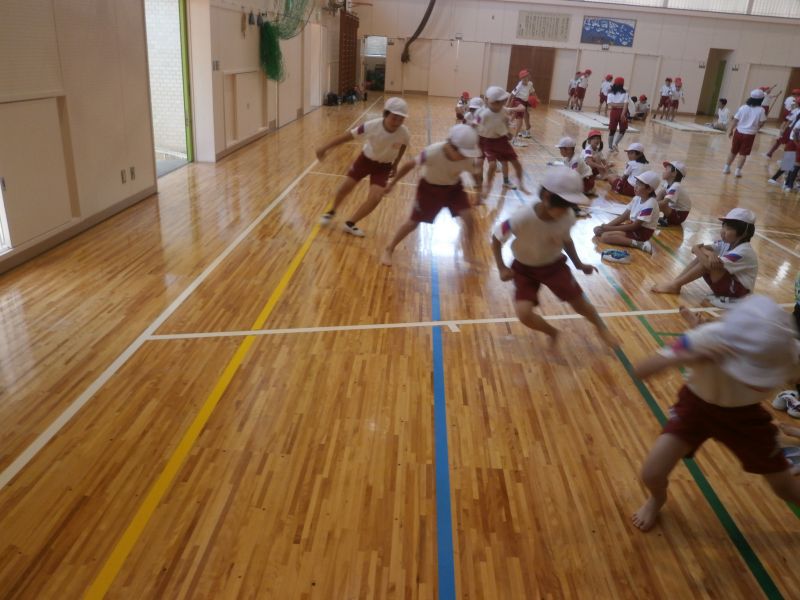 快晴となり、暑い中での実施となりましたが、校庭での種目と体育館での種目、どの子も意欲的に取り組みました。