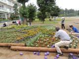 3日に引き続き、花壇に白いペチュニアの苗を植え、完成しました。