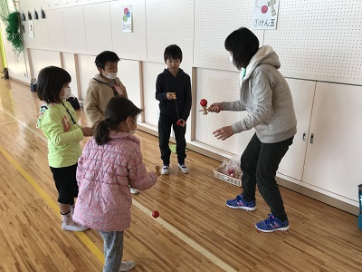 こま、けん玉、お手玉、だるま落とし、あやとり、おはじき、羽根つき、