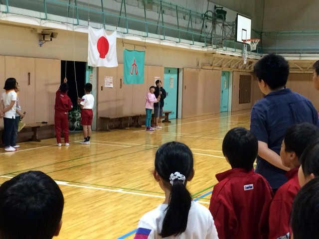朝のつどいは体育館で行いました。