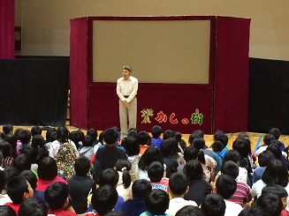 11月11日(水)に芸術鑑賞会が行われました。本年度は、影絵劇団かしの樹による「はらぺこプンタ」「走れメロス」を鑑賞しました。また、上演の間には、「影に映るのな~に?」みんなで当てる影絵教室も行われました。子ども達は、不思議な影絵の世界に引き込まれ、楽しいひとときを過ごすことができました。
