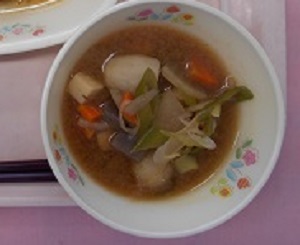 今日は、味噌味のけんちん汁でした。