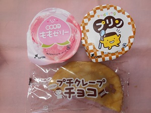 ももゼリー、プリン、プチクレープの3種類から選んでもらいました。