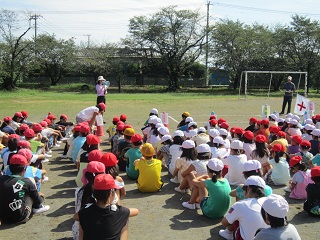 9月3日(木)に地震後火災発生を想定しての避難訓練を行いました。今回は、子ども達には予告なしで実施しました。子どもたちは、放送や教師の指示をよく聞き、身を守る第一次避難、安全な場所に避難する第二次避難ともによくできました。校長先生からは、「練習は本番のように、本番は練習のように」という話がありました。