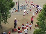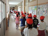 地震の後に火災が発生した想定で実施しました。放送や担任の話を